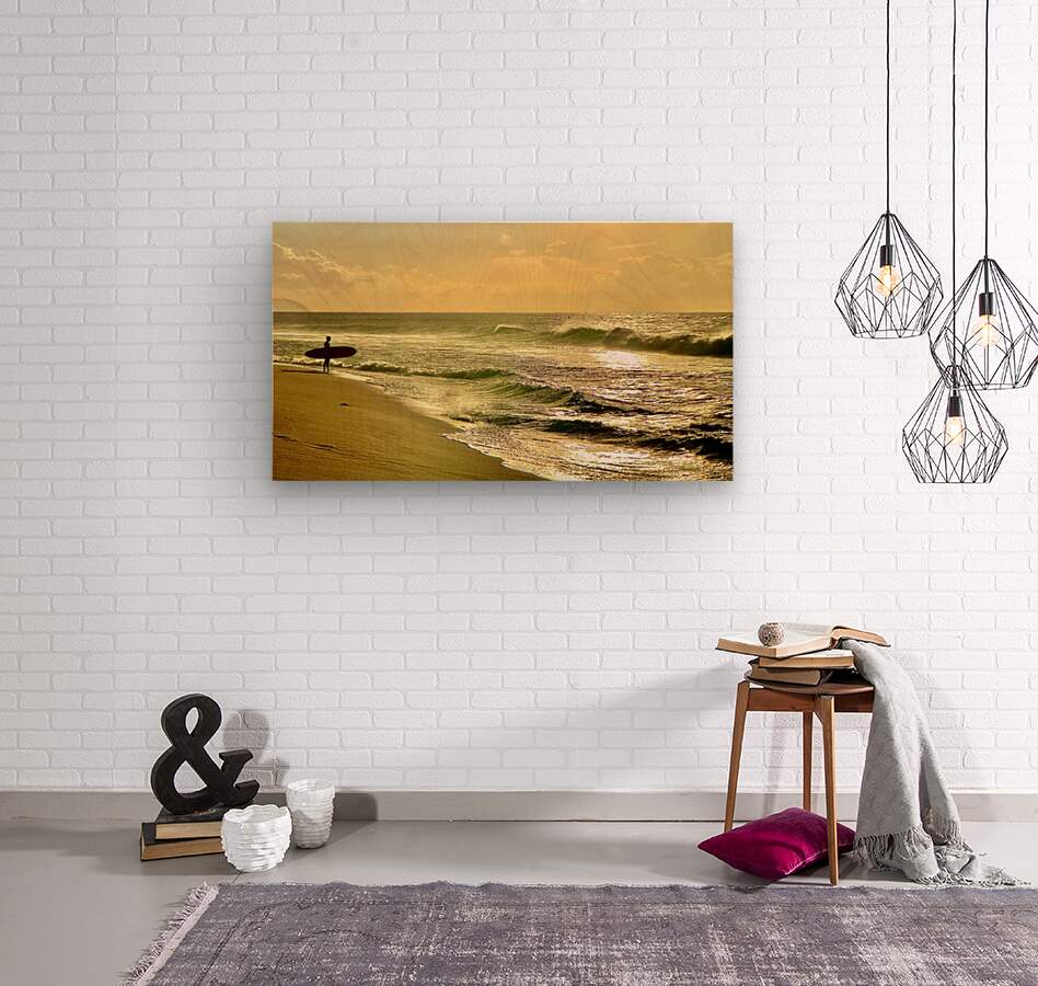 ABOUT THIS ARTWORK: SURFER ON THE BEACH AT SUNSET