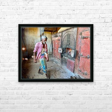 Man Fuelling Up the Fire Jimmy Roy Photos Puzzle printing