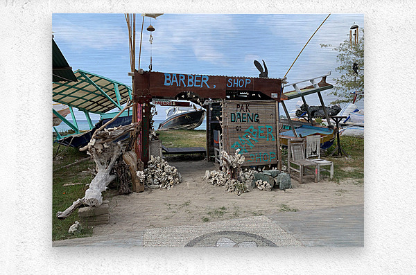 Get this artwork "Crazy Island Barbershop" in a framed print.