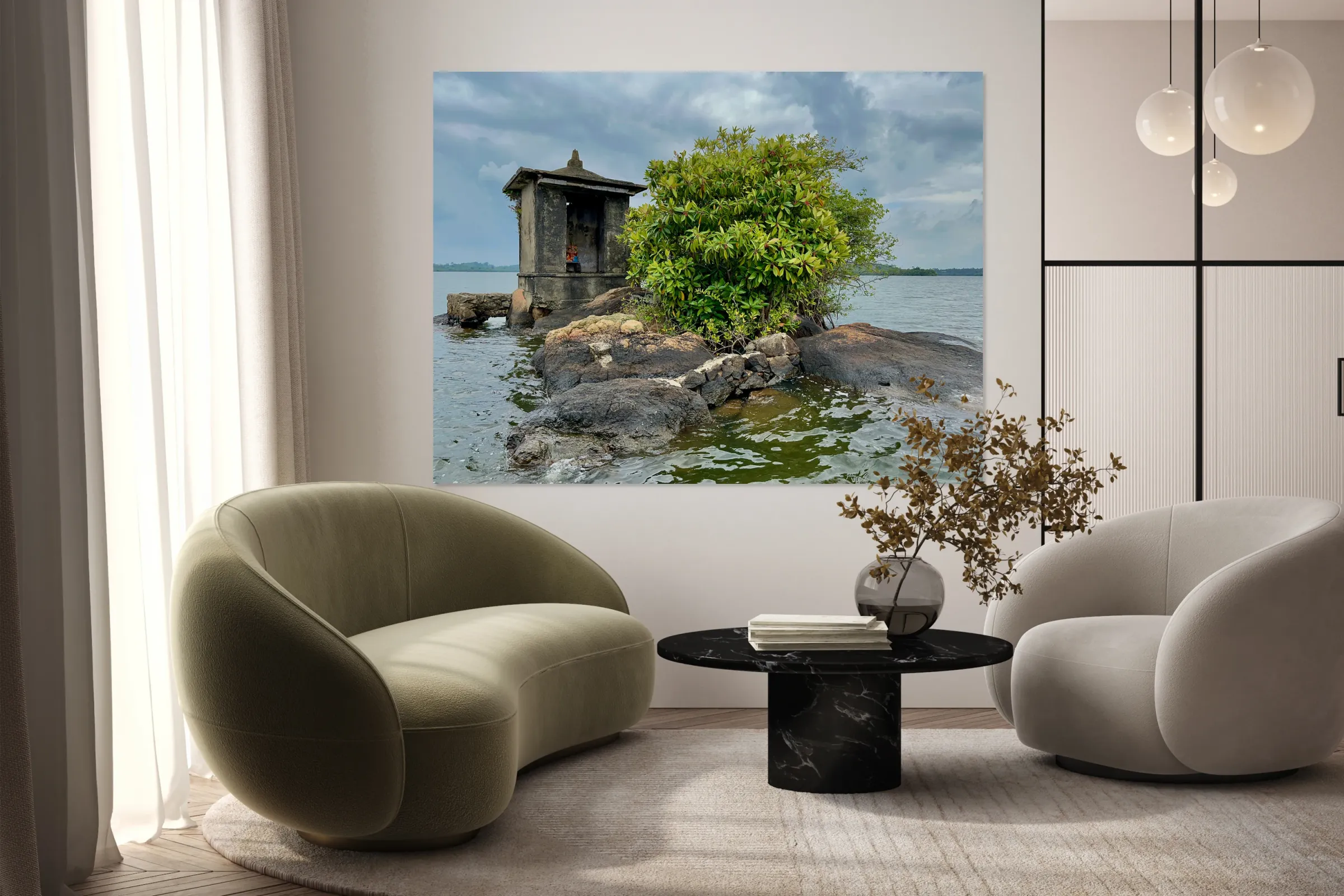 ABOUT THIS ARTWORK: MINI TEMPLE ON THE LAKE SRI LANKA