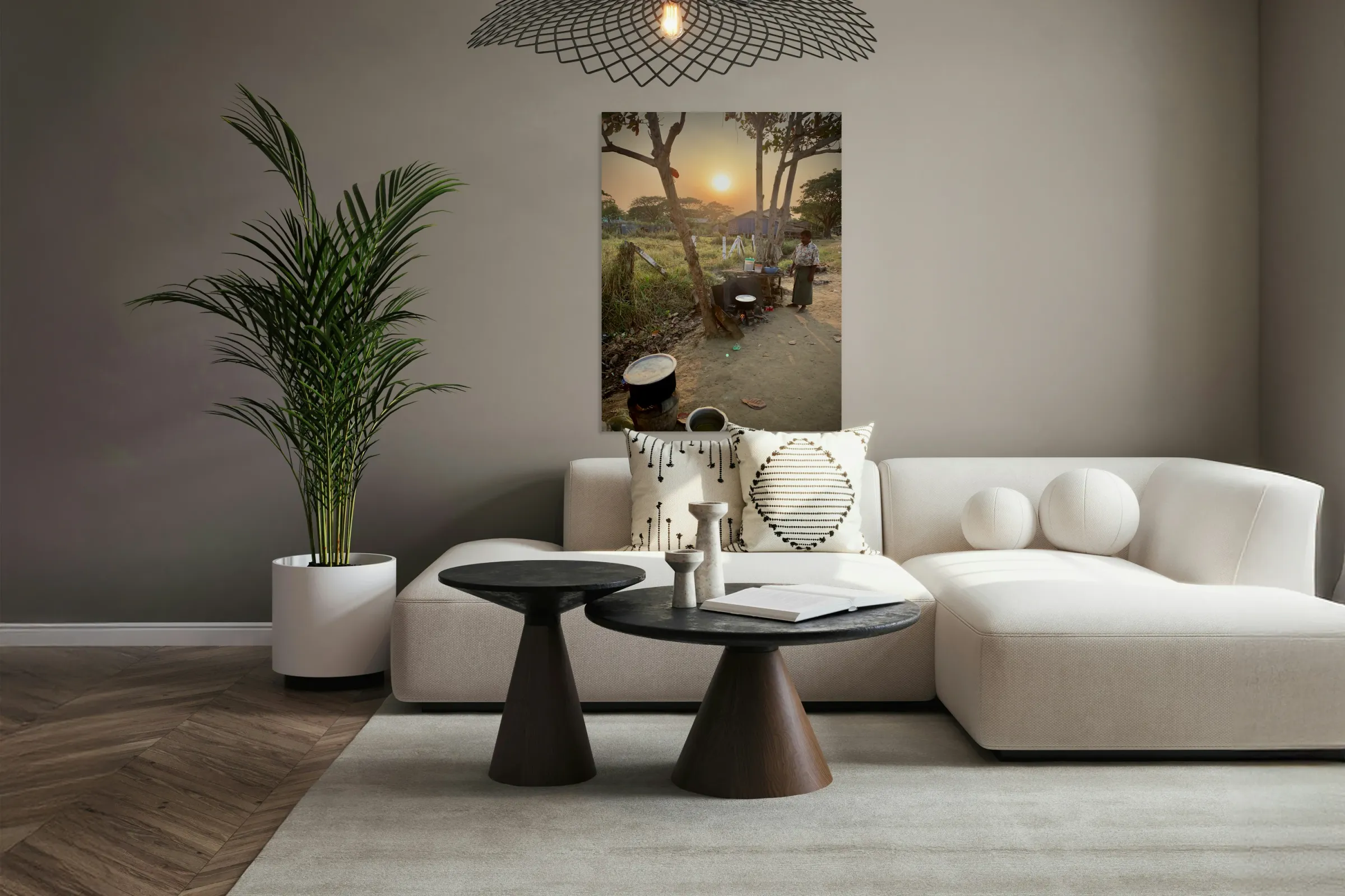 ABOUT THIS ARTWORK: COOKING OUTSIDE IN MYANMAR AT SUNSET
