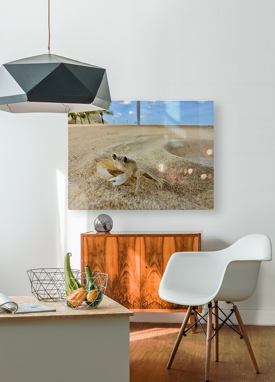 Get this artwork "White Crab on the Beach" in a framed print.