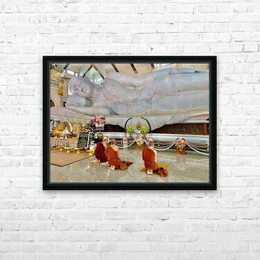 Praying White Buddha Picture Frame Printing