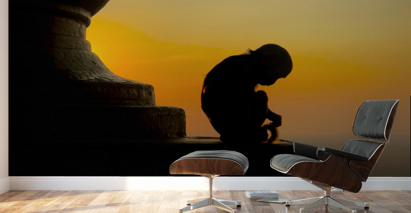 MEDITATIVE MONKEY AT SUNSET