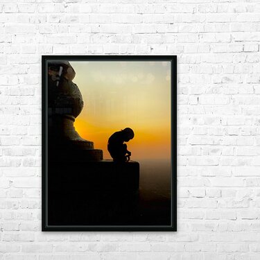 Get this artwork "Meditative Monkey at Sunset" in a framed print.
