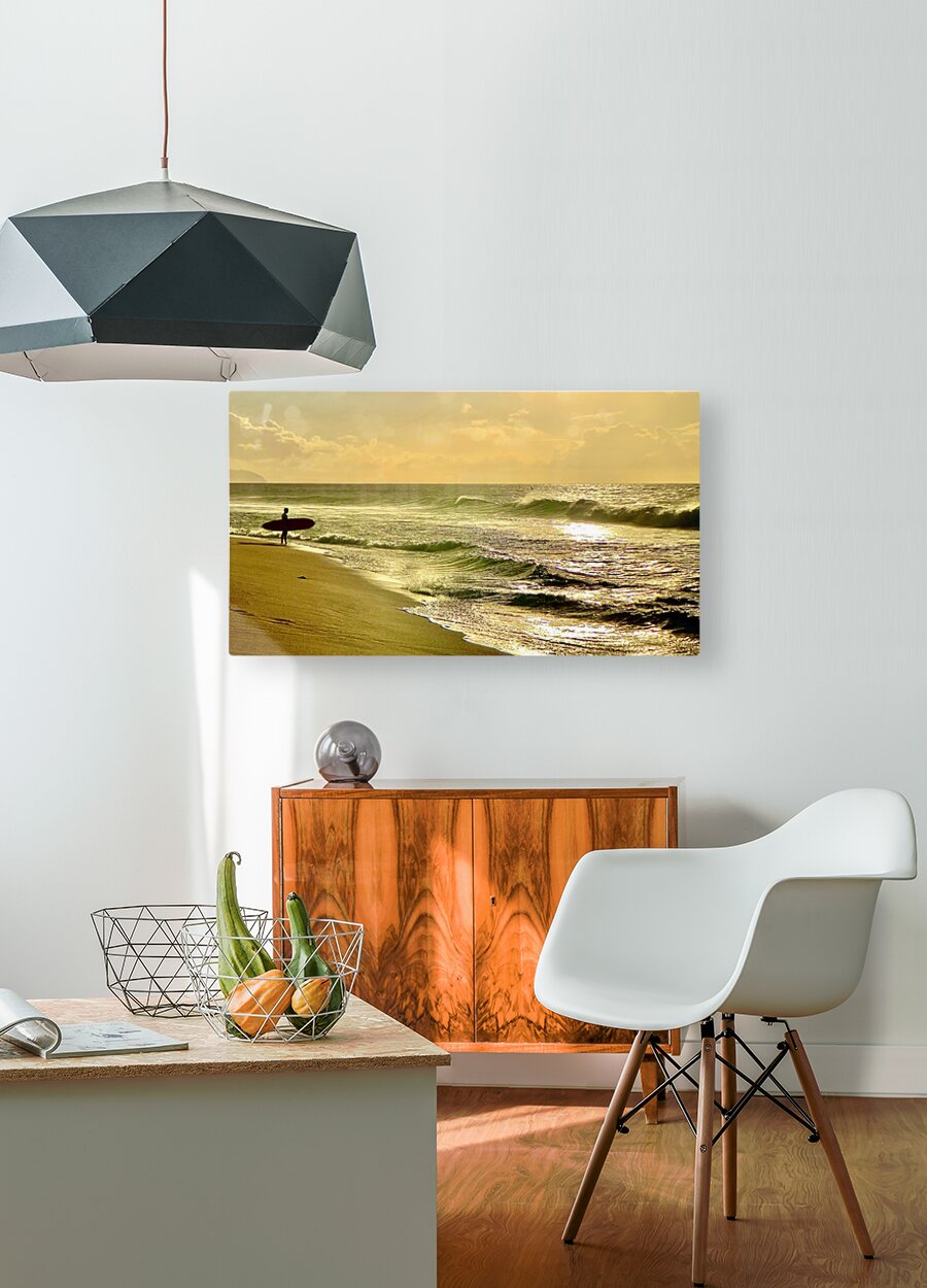 ABOUT THIS ARTWORK: SURFER ON THE BEACH AT SUNSET