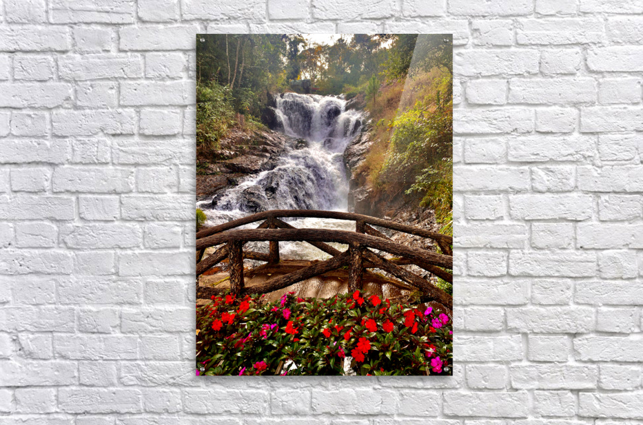Waterfall and Red Flowers Jimmy Roy Photos Puzzle printing