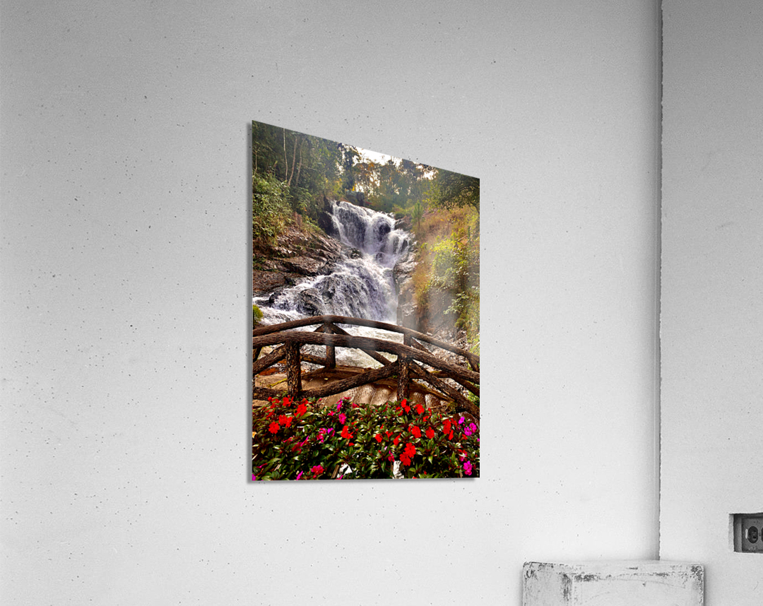 Get this artwork "Waterfall and Red Flowers" in a framed print.
