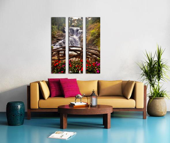 Waterfall and Red Flowers Canvas print