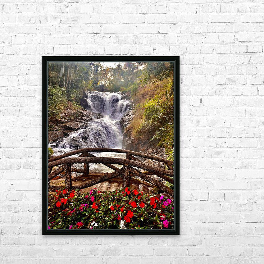 Waterfall and Red Flowers Picture Frame Printing