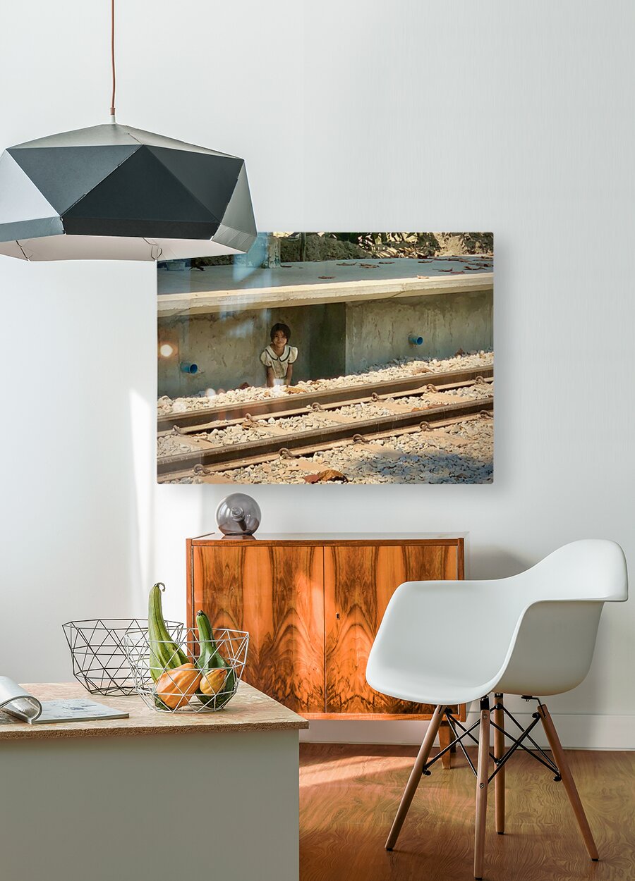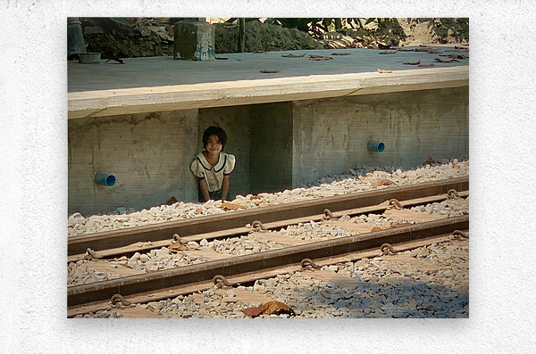 Little Girl Hiding from the Train HD Sublimation Metal print