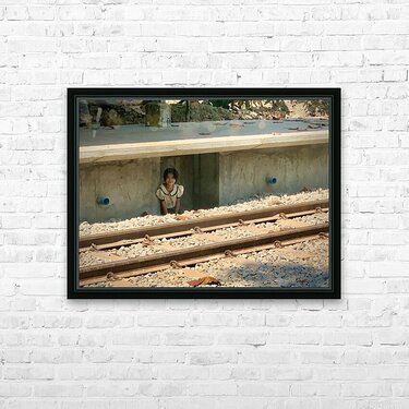 Little Girl Hiding from the Train Frame print