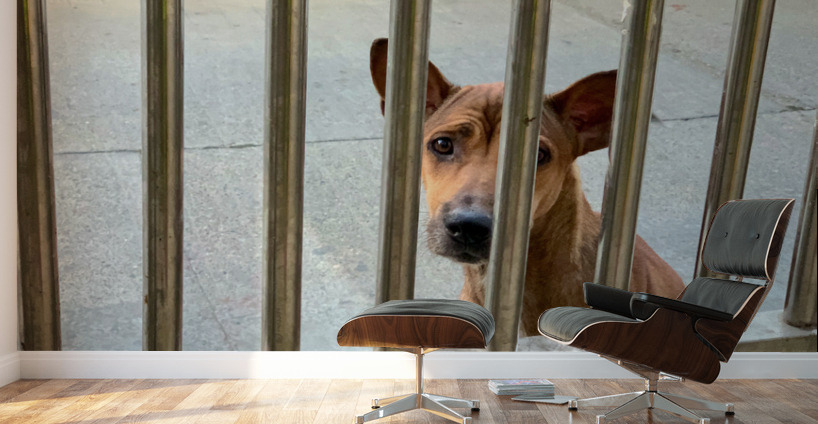 ABOUT THIS ARTWORK: SAD DOG BEHIND BARS