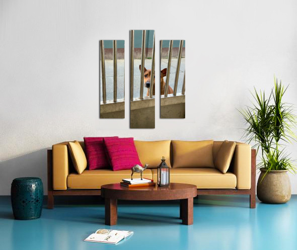 Sad Dog Behind Bars Canvas print