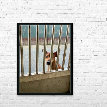 Get this artwork "Sad Dog Behind Bars" in a framed print.