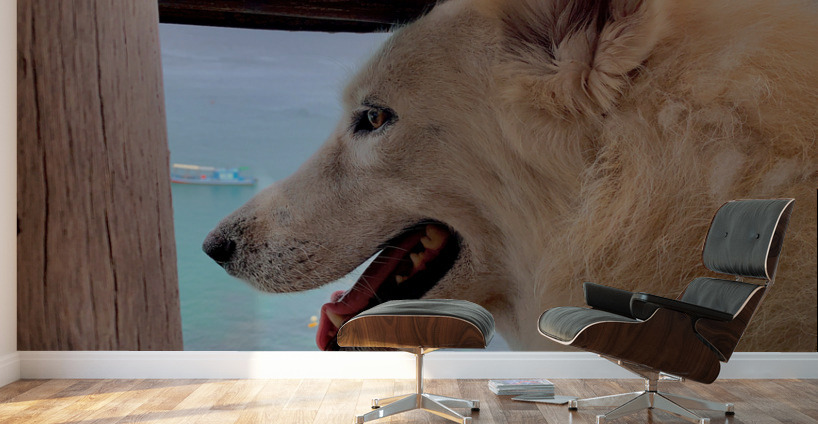 ABOUT THIS ARTWORK: BEATIFUL WHITE DOG LOOKING AT THE SEA