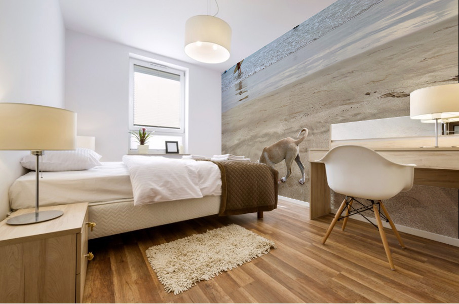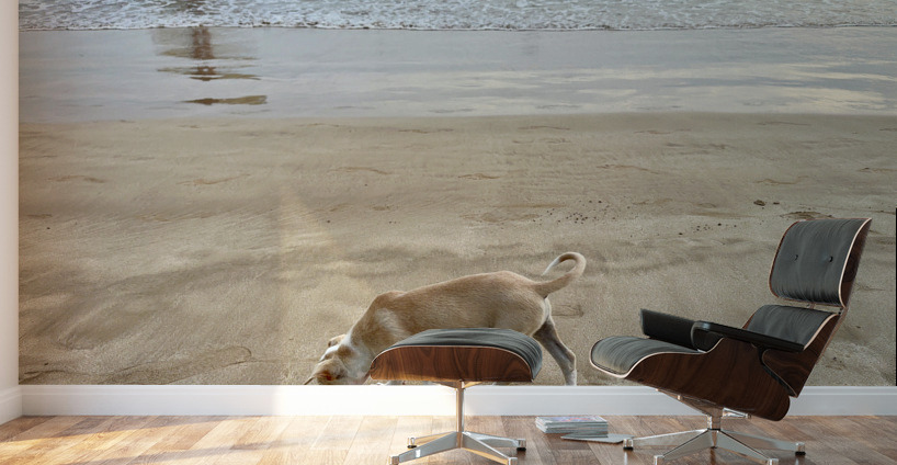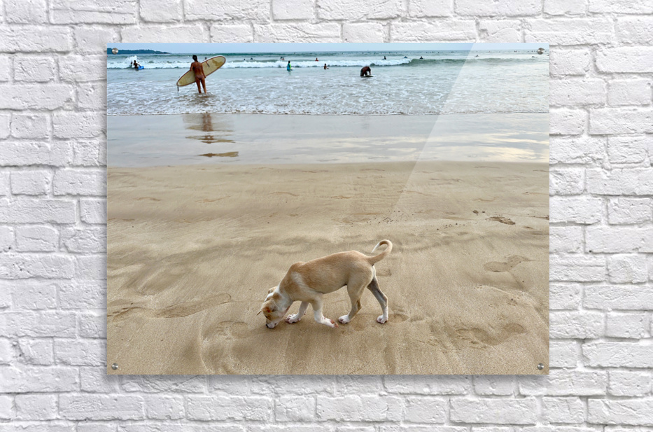 Get this artwork "Puppy Walking on the Beach" in a framed print.