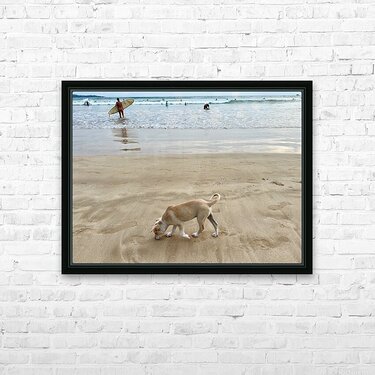 Puppy Walking on the Beach Picture Frame Printing