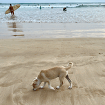 PUPPY WALKING ON THE BEACH