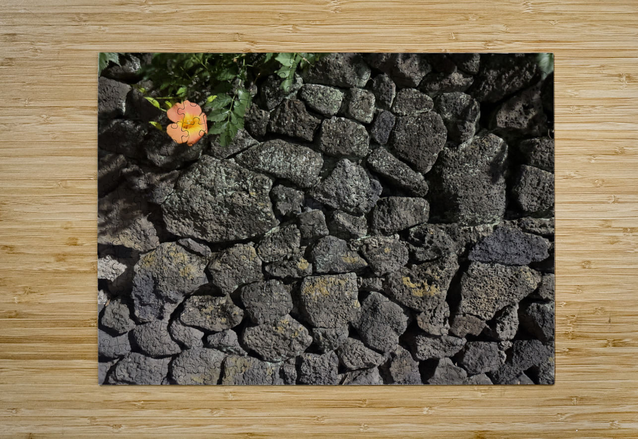 The Black Wall and the Orange Flower Jeju Korea Jimmy Roy Photos Puzzle printing