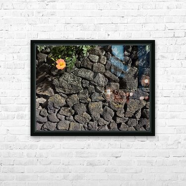 The Black Wall and the Orange Flower Jeju Korea Picture Frame Printing